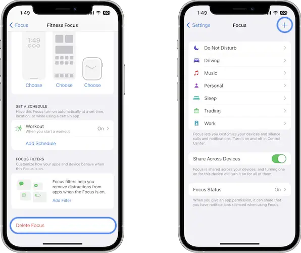 - 1. Settings -> Focus -> Fitness -> Delete Focus.