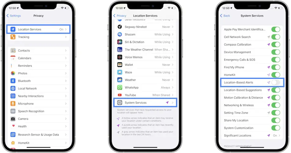 Important: Please also check for Location-Based Alerts to be enabled in Settings -> Privacy -> Location Services -> System Services
