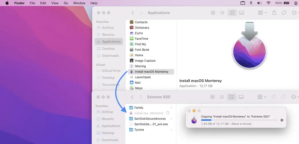 - Copy and Paste the install macOS Monterey file to the external drive.