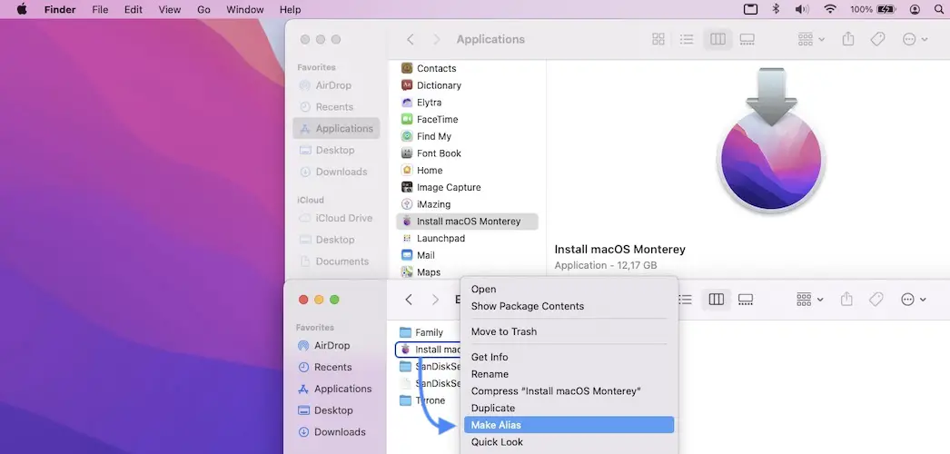 If you have an external drive that’s large enough, you can copy the install macOS Monterey file to the external drive and delete it from your MacBook. This will free up over 12 GB on your computer as you can create an alias and run the installation from the external disk.