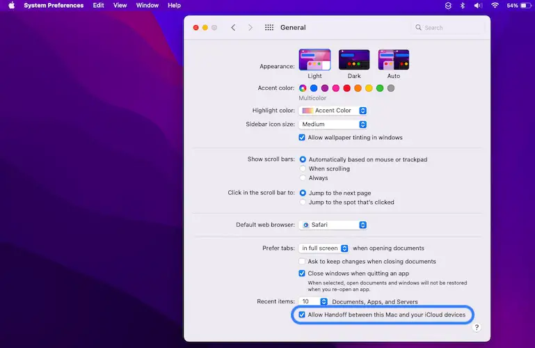 3. Enable Handoff