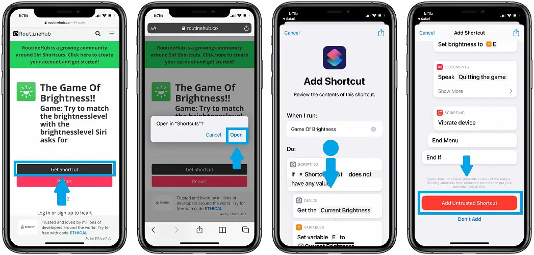 - 4. Scroll the Add Shortcut screen to review the shortcut and tap on Add Untrusted Shortcut.