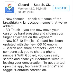 No matter if you already use Google’s third party keyboard for iOS, or you aim to install it for the first time, use this official download link to grab the latest version for your iPhone or iPad. The app is 117 MB large and requires your device to run iOS 9.0 or later.
