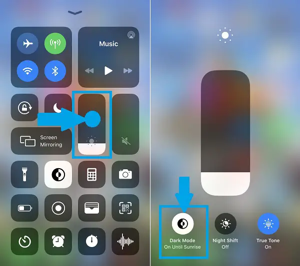 How To: Swipe for Control Center and tap the Dark Mode icon to enable or disable!