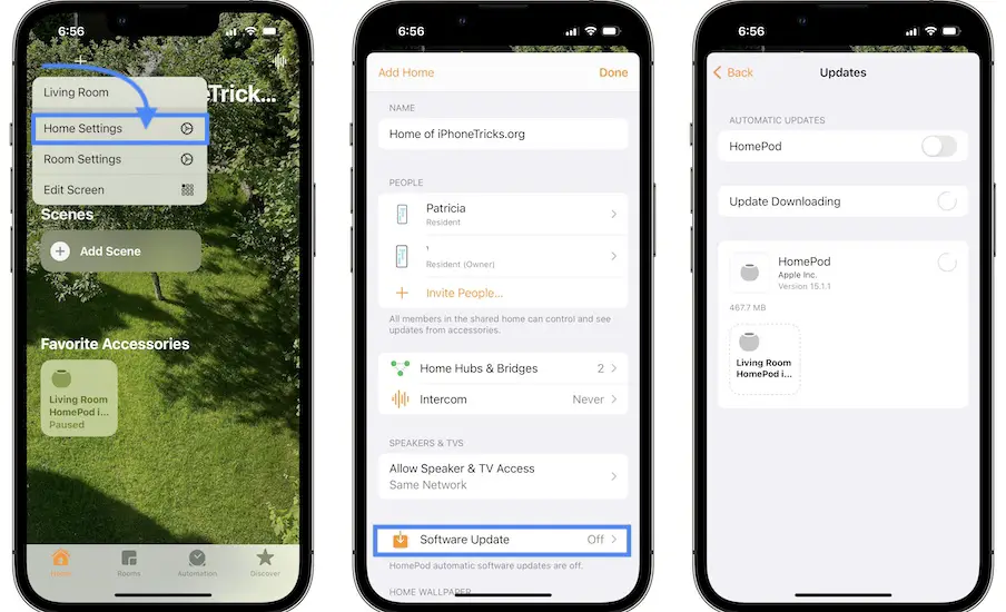 - Tap Update, as soon as HomePod version 15.1.1 is detected.