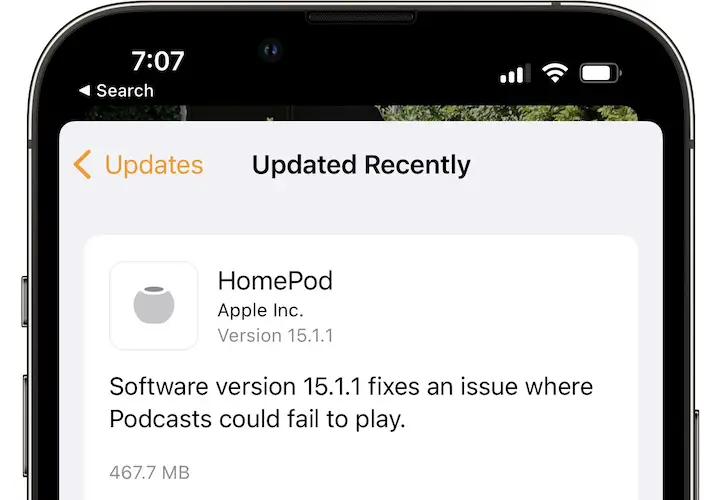Fact: The HomePod 15.1.1 update file is 467.7 MB large. Size might vary depending on HomePod model and the previous version that’s installed on the device.