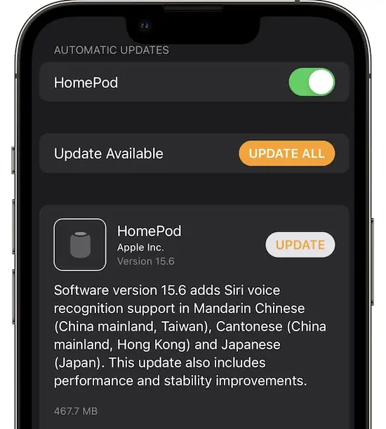 Apple has released HomePod 15.6 update with additional languages supported by the Siri Voice Recognition feature. Under-the-hood performance and stability improvements are also included in this release.