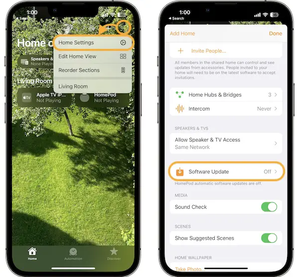 Go for Menu (top-right corner) -> Home Settings -> Software Update.