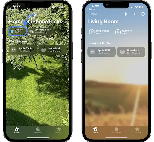 - 1. Open Home app and tap on the HomePod that you want to show Climate data..