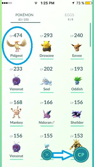 3. Make sure the creatures are listed from the highest CP (Combat Power) to the lowest ones. CP should be displayed in the bottom-right corner of the screen