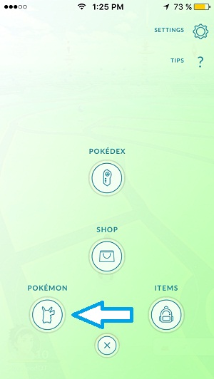 2. Hit the Pokemon icon (left-handside of the menu screen), to open your monster roster.