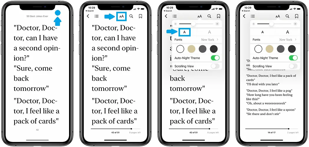 5. Adjust the font size by tapping on the “small A” or “big A”.