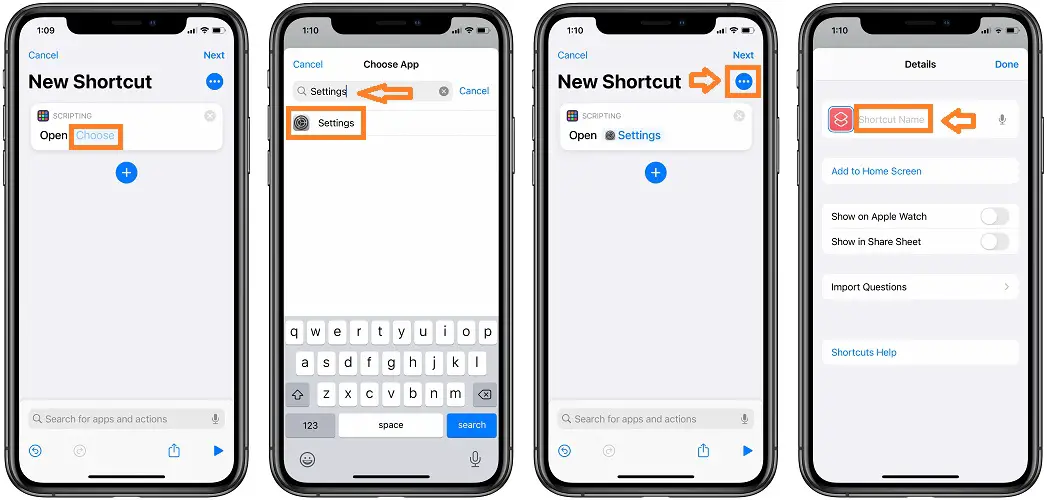 - 8. Tap on Shortcut Name and provide a name for the shortcut to better recognize it later.
