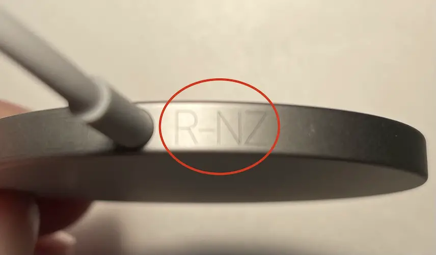 The Apple MagSafe charging puck has a black color R-NZ marking on the side, next to the jack. If you can’t find it, chances the the product is fake increase.