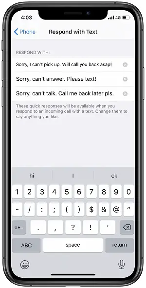 How To Customize iPhone Quick Responses When Responding With Text To Decline A Call