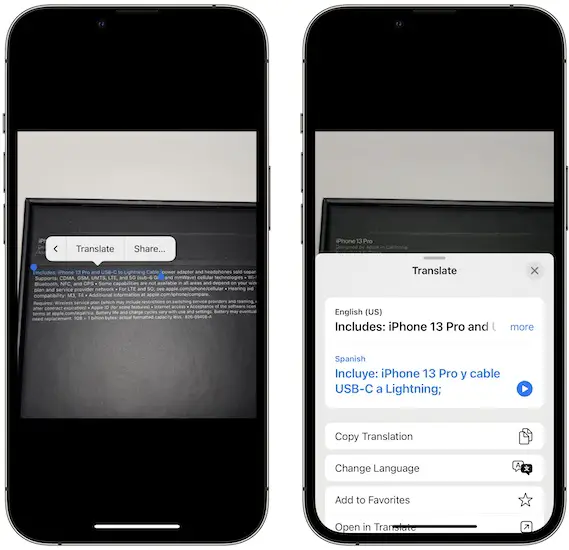 In iOS 16 you can also directly translate text from video. Simply, tap Translate from the quick actions menu and your device will recognize the language and perform the translation.