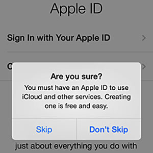 1. iPhone Configuration: The easiest solution is to create a free Apple ID while you set up your new iOS device. Choose the email address you want to configure as username. You can use one that you already own, or create a new icloud.com email account, by choosing the username, followed by the @icloud.com. Select a Password, confirm it and that’s it you now own a fresh Apple ID.