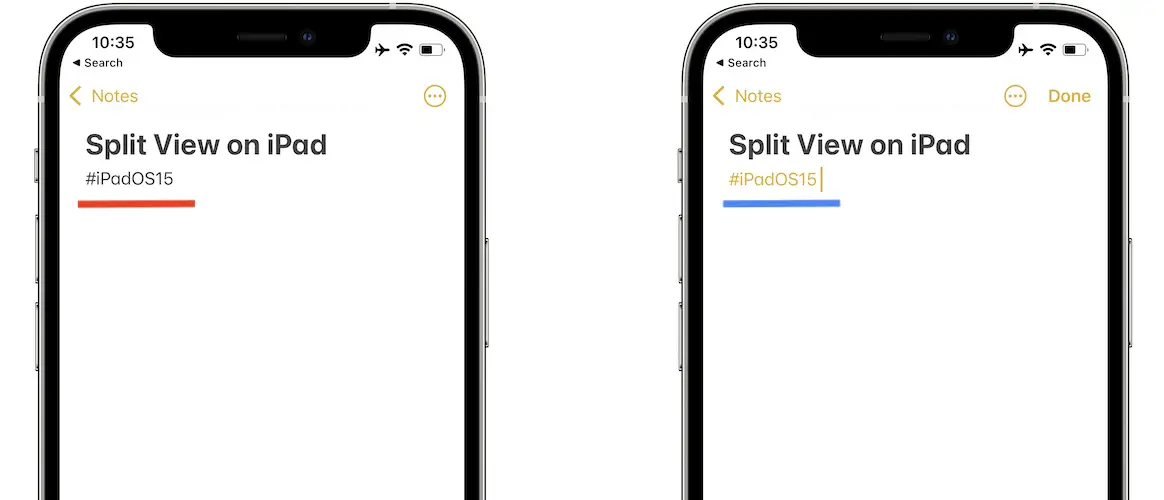 Tip: Tap space to confirm the tag. A tag that is recognized by the Notes app is displayed with a yellow font. If its greyed out it means that it hasn’t been taken in account yet.