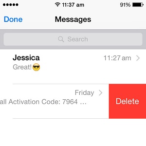 Of course, that you can delete the whole conversation if you wish to opt for the simple way. This is done by opening iOS Messages and swiping left on the conversation in question. The red Delete label is unveiled. Tap it and the Message thread is erased!