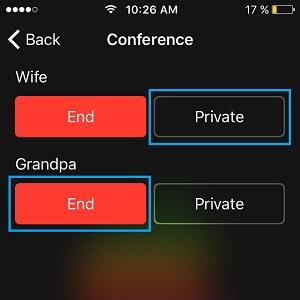 In case of long business calls, there might come a point when one or more participants have to leave the conference. You can easily drop them from the discussions without ending the group call.