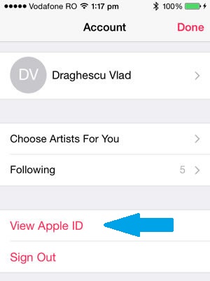 2. Hit the View Apple ID button on your Account view. Insert your Apple ID password, if prompted and tap OK.