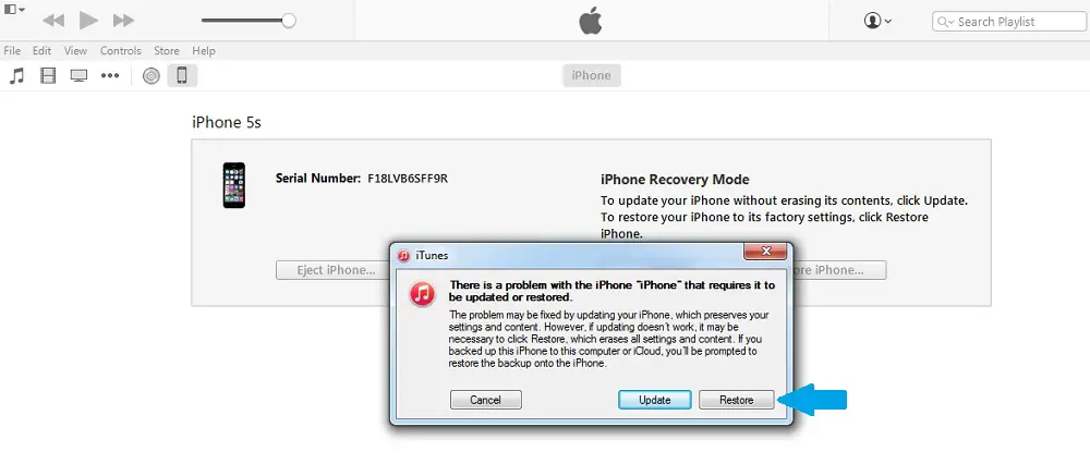 Step 6: In some cases iTunes will prompt you that there might be a problem with the update and asks you to allow it to Restore your device to the factory setting, before trying a second update attempt. Agree with this solution because iTunes will automatically help you to install your latest backup when the downgrade finishes.