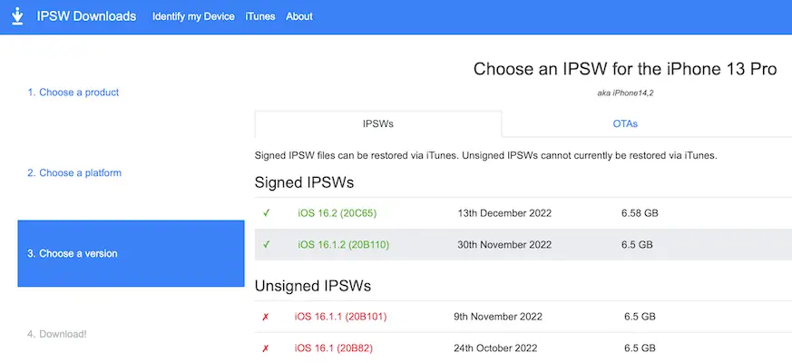 - The iOS 16.1.2 ipsw file, downloaded on your computer. Select your iPhone or iPad model and download it from here.
