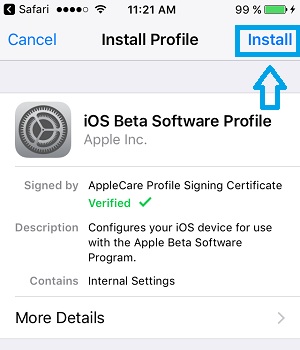 3. Tap Install in the top right corner of the screen.