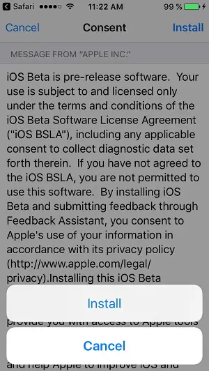 4. Provide your iPhone’s Passcode and give your consent regarding this iOS 11 Developer Beta install.