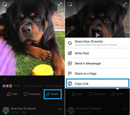 Next, use the Copy Link option and the Facebook address of the video is saved on to the iPhone’s clipboard.