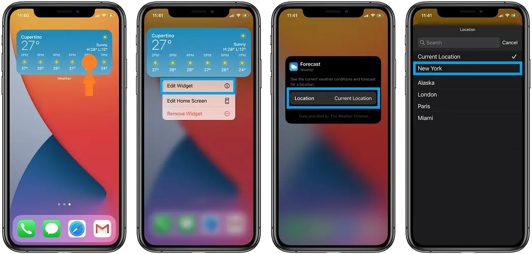 The Weather Widget is added by default to the iOS 14 Today view. Swipe-right on the Home Screen to bring up the Today View. Next, you can drag & drop the Weather widget to the desired iPhone Home Screen page. If you’re not OK with the size small size, you can remove the widget and add a larger one following the tutorials provided below!