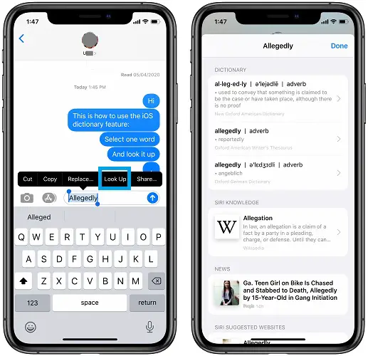 How To Enable And Use The iPhone Dictionary Feature