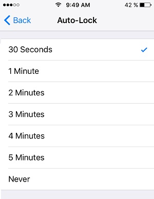 Tap on Settings, from the Home screen of your iOS device. Select Display & Brightness and scroll for Auto-Lock. Tap it and notice that the default setup makes your iPhone lock its screen 30 seconds after you stop using it. Other options are: Never, 1 Minute, 2 Minutes, 3 Minutes, 4 Minutes or 5 Minutes.