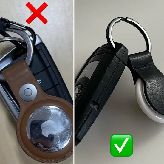 Fix: Use an AirTag keychain that is small enough not to allow the key to fully bend over the AirTag, or a lanyard that’s long enough to ensure a comfortable distance between the fob and Apple’s Bluetooth tracker.