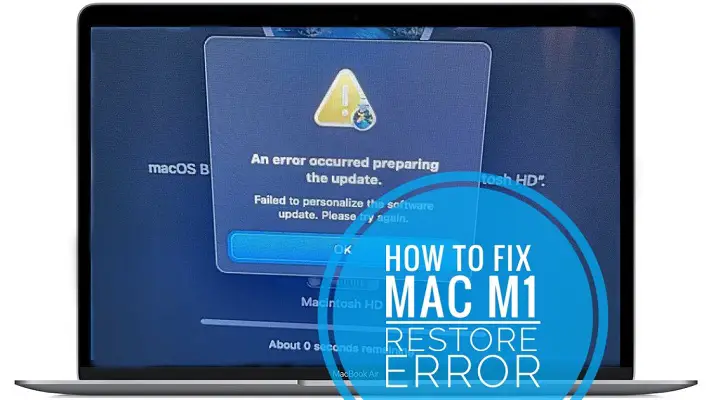 You’ve purchased a new Mac to take advantage of the revolutionary M1 Apple Silicon chip but are prompted with the ‘An Error Occurred Preparing The Update’ dialog box when trying to restore the computer. Is your machine stuck at the ‘Failed to personalize the software update. Please try again’ popup? This appears to be a common problem and Apple has published a support document that informs you how to fix it.