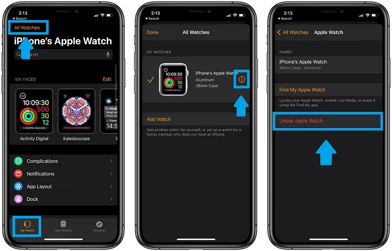 Fact: A full copy of the data on your device will be saved on your iPhone. - Next up, use the Watch app to re-pair your Watch to your iPhone.