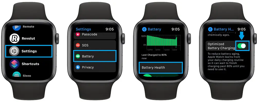 Tip: To filter out this feature that aims to prevent battery ageing, you can manually disable it from your wrist. Click the Digital Crown and browse for Settings -> General -> Battery -> Battery Health -> Optimized Battery Charging (Turn Off). More details are available here.