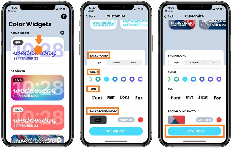 6. Tap Set Widget to save your edits.