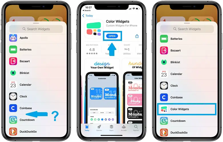 - 1. As soon as you download the app from the App Store you have to open it. A minor iOS 14 glitch prevents apps from displaying in the ‘Add Widget’ list if you don’t run the app first after you download or update it.