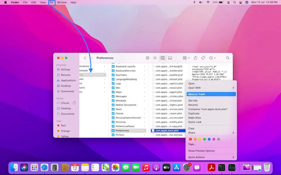 ~/Library/Preferences/com.apple.dock.plistand click Go. - Duplicate the com.apple.dock.plist file and save it on your Desktop.