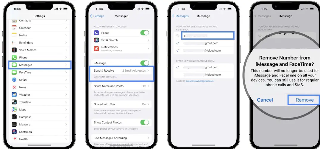 - Tap your phone number and confirm that you want to Remove it from iMessage and FaceTime. Does this help?