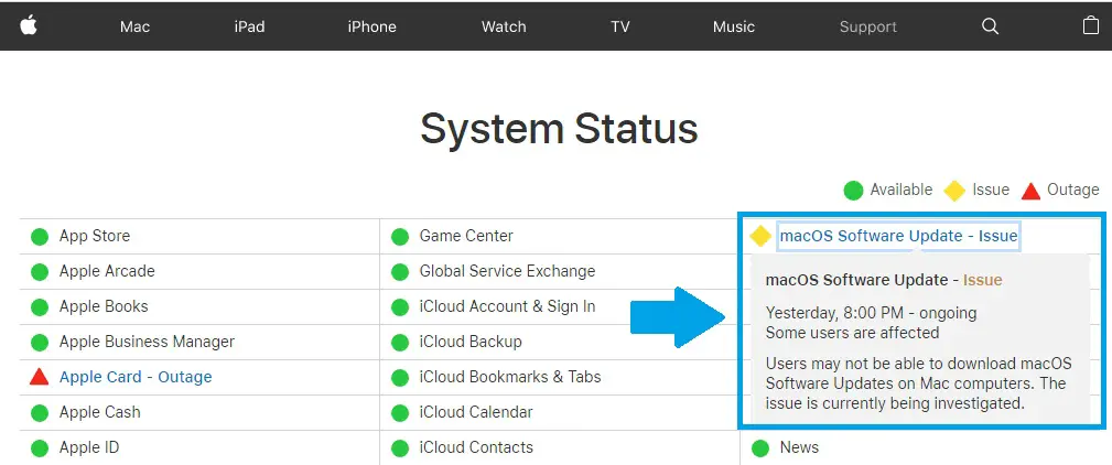 If Apple’s servers are overloaded and can’t handle the macOS Big Sur software update rush you should check Apple’s System status page.