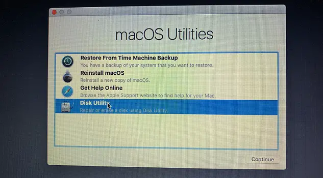 - Restart your Mac and press & hold Command + R keys to bring up the macOS Utilities menu.