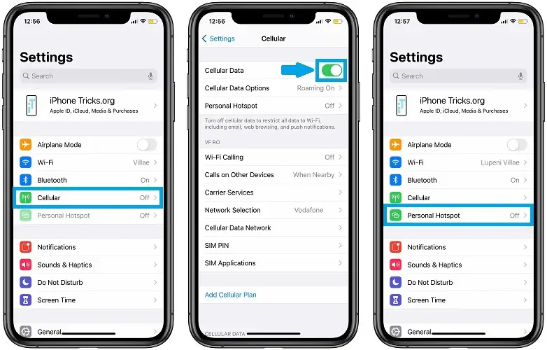 If the Personal Hotspot option is grayed out in Settings, the most common fix is to check if Cellular Data is enabled. As mentioned above, the feature only works via your carrier’s Internet connectivity: