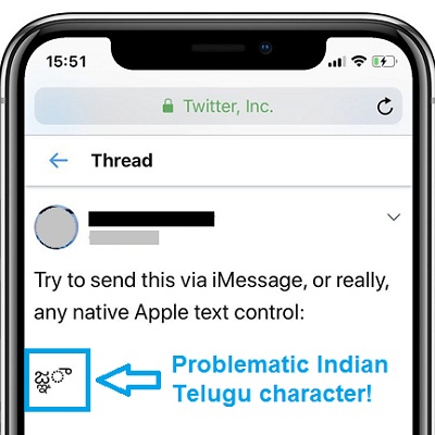 Posted in News by Patricia on March 13, 2018The Indian Telugu character is also affecting other popular iOS apps like Safari, WhatsApp, Facebook Messenger and more. It doesn’t matter if you receive a text containing it or open a web-page that tries to display it the app in question will freeze and you have to delete the conversation in other to quickly fix the issue.