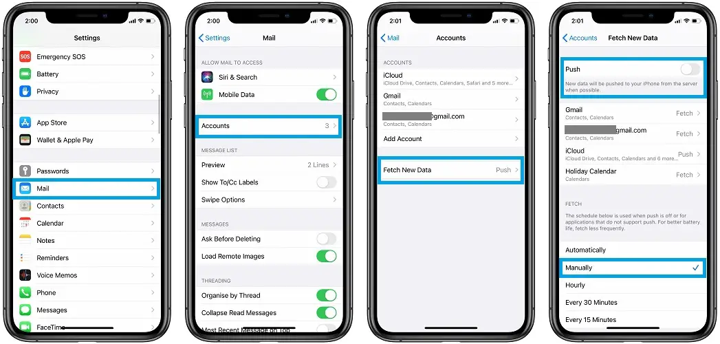 Next, open the Mail app and test if the problem is solved. If the error persists, proceed to step 2.