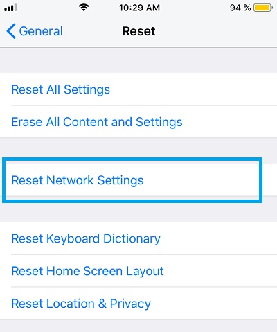 4. Tap on Reset Network Settings at the bottom of the screen.