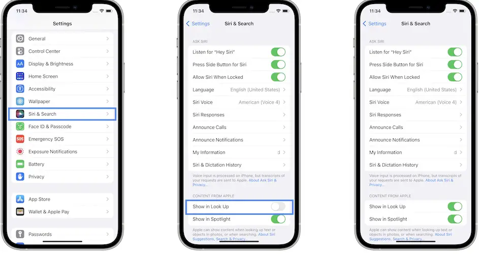 - Show in Look Up, under Content From Apple, should be enabled. If not turn it On using the toggle!