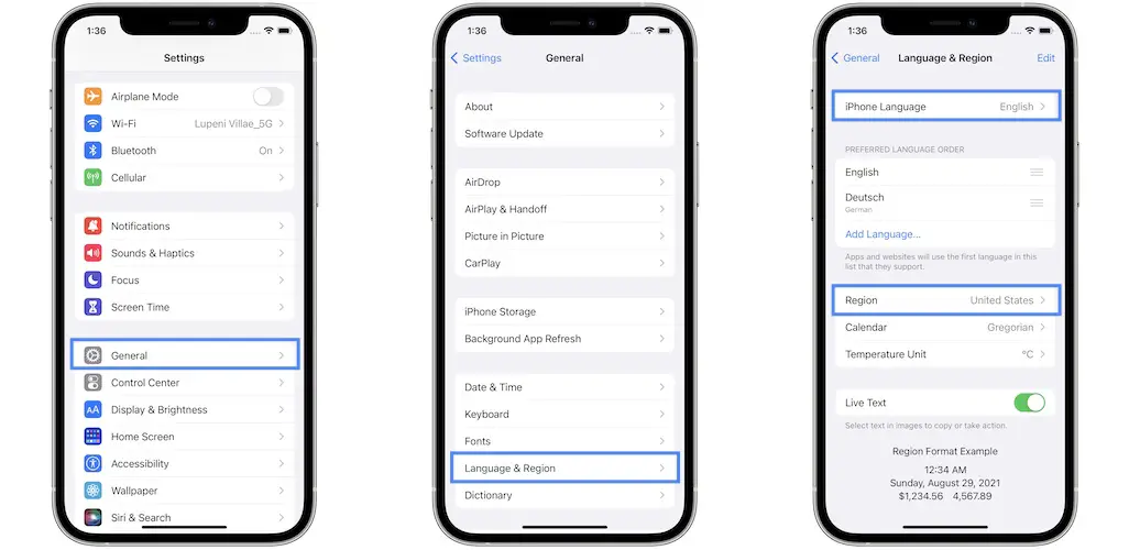 How to: Open Settings and browse for General -> Language & Region. Restart your iPhone after you perform the changes!
