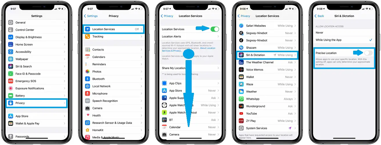 - 5. Make sure that Precise Location is enabled!